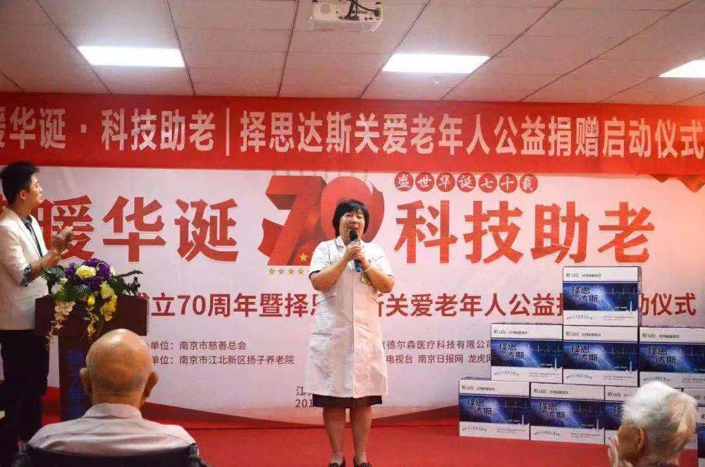 启动仪式现场,据南京市江北新区扬子敬老院田院长介绍:“我们南京市江北新区扬子敬老院是一家集养老、护理、康复和社区居家服务为一体,专业的护理机构,以“医养融合”为特色,让入住的老人在享有生活照料的同时得到基础疾病的治疗,提供便捷的医疗护理、康复保健服务。这次择思达斯开展的‘科技助老’公益捐赠行动,对我院的医疗设备和技术得到了高度的提升,特别是针对我院记忆力减退、语言和智能障碍、睡眠障碍、吞咽困难、焦虑易怒、手抖震颤、脑萎缩、脑卒中以及帕金森和老年痴呆的老人们来说更是一种福音,他们一直被脑功能障碍的各种痛苦折磨着,再多的物质关怀都不如消除切身的痛苦来得实在,所以择思达斯所捐赠的采用先进的物理疗法针对各种脑功能障碍疾病的经颅磁刺激仪,真正的解决了我们现在面临的一大难题!希望通过先进科技的力量和科学的训练指导可以帮助我院老人们重拾康复的信心,安享健康舒适的晚年生活! ”