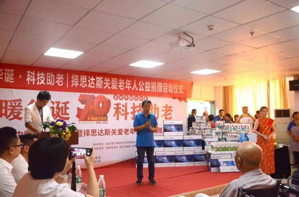 原来,新中国成立70周年之际,在南京市慈善总会的带领下,择思达斯爱心义工团队走进南京市江北新区扬子敬老院,捐赠了包含择思达斯经颅磁刺激仪、康复指导手册、多功能颈肩按摩仪、智能语音播报血压计、U型颈椎按摩C枕、电子体温测量计、老年专用体脂称、家用榨汁机等在内总价值100万元的爱心物资的公益善举,南京市慈善总会副秘书长王增斌、南京市慈善总会义工部部长戴德新、南京市江北新区扬子敬老院院长田丽萍、以及择思达斯经颅磁总经理汤茂江、副总经理陈国雄,共同出席了当天的爱心义工服务活动。