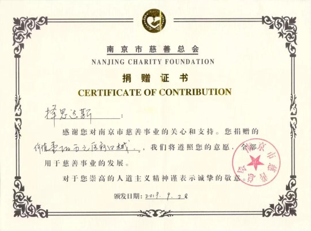 2019年9月28日上午,在新中国成立70周年之际,为了深入贯彻党的十九大会议精神“一带一路”精准扶贫的指导方针,择思达斯【情暖华诞 · 科技助老】关爱孤残老人捐赠仪式在我市隆重开幕,现场择思达斯向南京市江北新区扬子敬老院捐赠了总价值100万元的爱心物资,并举行了捐赠仪式和择思达斯科技助老爱心捐赠接牌仪式。当场南京市慈善总会副秘书长王增斌授予择思达斯【公益爱心】捐赠荣誉证书,共同见证了择思达斯践行公益路上的新一个里程碑!