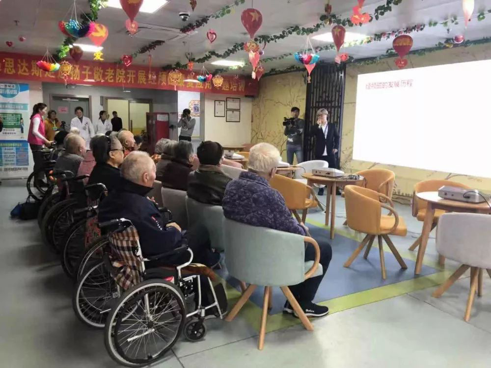 暖场活动后,择思达斯健康指导老师为在坐的可爱的老人们以及敬业的院内全部工作人员,开展了择思达斯经颅磁康复应用专题培训,择思达斯健康指导老师全面详细的介绍了经颅磁刺激仪的起源、发展历程、工作原理、技术优势、应用领域、适用人群、禁忌症以及科学使用注意事项和仪器的日常维护与保养,同时,现场还分享了“择思达斯家庭康复一体化解决方案”,以“产品+服务+体系”的方式,通过开展家庭康复训练,从病理知识科普、家庭康复科技治疗、体能康复训练、科学饮食搭配、穴位按摩保健、日常活动训练、音乐舒缓放松、康复心理疏导等全方位多角度,形成“以机构为基地”的康复治疗一体化解决方案,希望通过系统化的详细讲解,帮助扬子敬老院的脑功能障碍老人早日恢复健康!