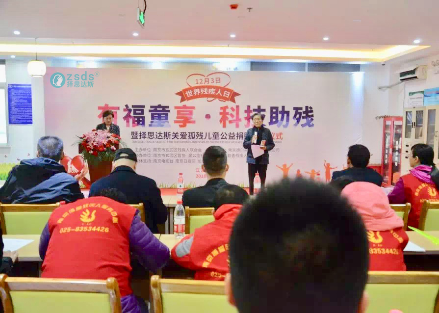 2018年12月3日,是每年一度的“世界残疾人日”。上午9:30,“有福童享•科技助残”公益捐赠行动在我市隆重启动,本次活动由南京市玄武区残联牵头主办,市慈善总会联合玄武区盲协、晏公庙社区、博爱勤善残疾人之家、择思达斯经颅磁共同协办,来自社会助残机构代表、各界媒体、以及优秀义工代表共计100余人出席活动现场,共同见证择思达斯科技助残关爱孤残群体的爱心启动仪式。