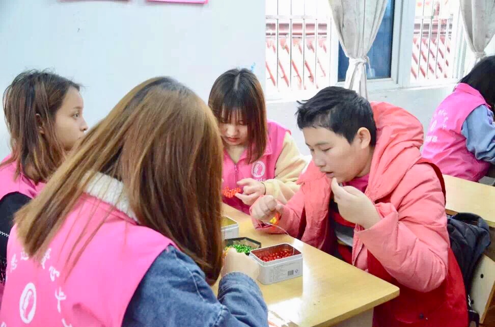 同时一起做手工,用串珠穿连爱心挂件,乐趣无穷。此外,现场还为小伙伴们端送义工们亲手包的爱心水饺,欢声笑语中传递着彼此之间真诚的温暖。