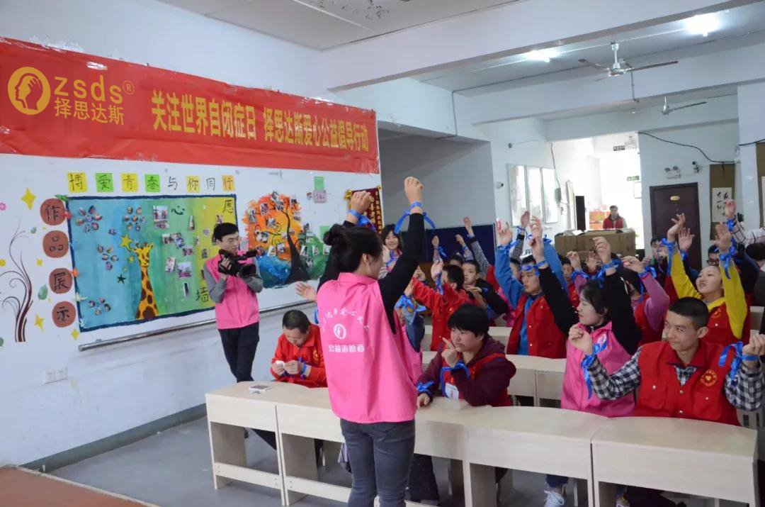 2019年4月2日,第十二个世界自闭症日,择思达斯爱心义工团队走进南京博爱残疾人之家开展了“凝聚正能量·爱心公益行——关爱自闭症公益倡导行动”,通过系上爱心蓝丝带、贴张照片墙、趣味小游戏、心理咨询老师爱心辅导等一系列爱心活动,积极宣传自闭症科普知识,现场满满的感动,满满的爱,热闹非凡,因为有爱,让他们不再孤单!