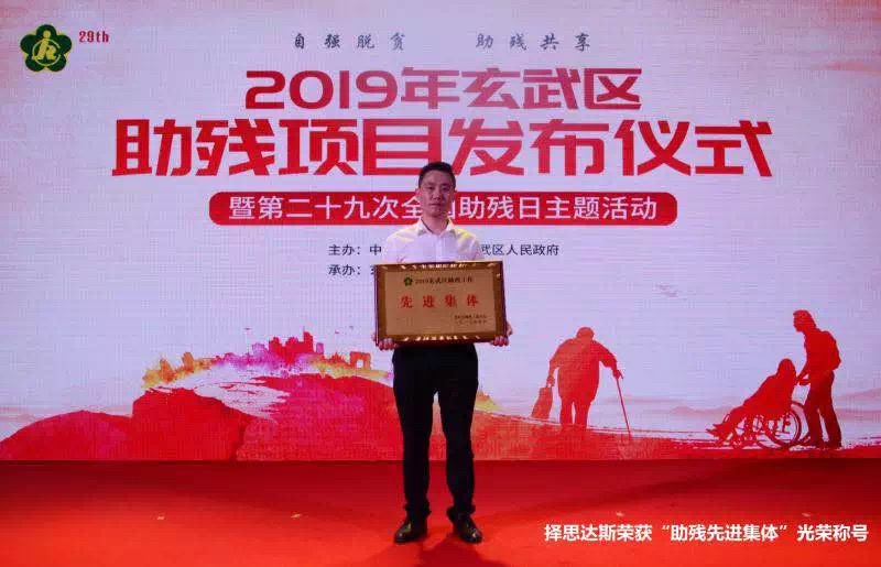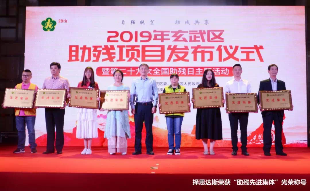 2019年5月17日,在第29届全国助残日到来之际,由中共玄武区委和玄武区人民政府主办、玄武区残疾人联合会承办的“自强脱贫•助残共享--2019年玄武区助残项目发布仪式”暨第二十九次全国助残日主题活动圆满成功,我司旗下择思达斯品牌应邀参加本次活动,且荣获“助残集体”光荣称号并受到现场表彰,该表彰是践行公益事业的荣誉象征,也是表彰大会上获此殊荣的科技型企业。